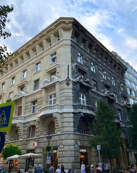 Budapeşte'deki bu binanın yalnızca bir tarafı yıkandı.