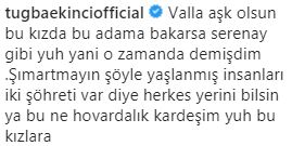 Tuğba ekinci, sosyal medya hesabında cem yılmaz ve saadet özsırkıntı’nın aşk yaşadığı yönündeki iddialarla ilgili bir paylaşımda bulundu. ekinci, ‘bu ne hovardalık kardeşim yuh bu kızlara’ ifadelerini kullandı.