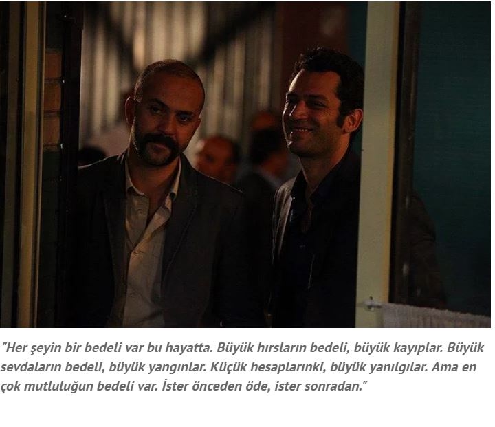Suskunlar ‘her şeyin bir bedeli var bu hayatta. büyük hırsların bedeli, büyük kayıplar. büyük sevdaların bedeli, büyük yangınlar. küçük hesaplarınki, büyük yanılgılar. ama en çok mutluluğun bedeli var. ister önceden öde, ister sonradan’