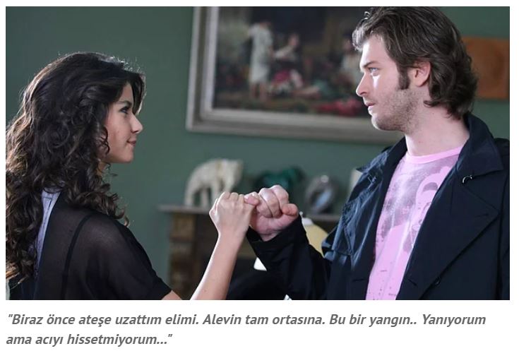 Aşk-ı memnu ‘biraz önce ateşe uzattım elimi. alevin tam ortasına. bu bir yangın.. yanıyorum ama acıyı hissetmiyorum...’
