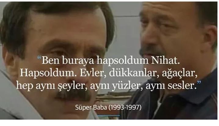 Süper baba ‘ben buraya hapsoldum nihat. hapsoldum. evler, ağaçlar, hep aynı şeyler, aynı yüzler, aynı sesler’