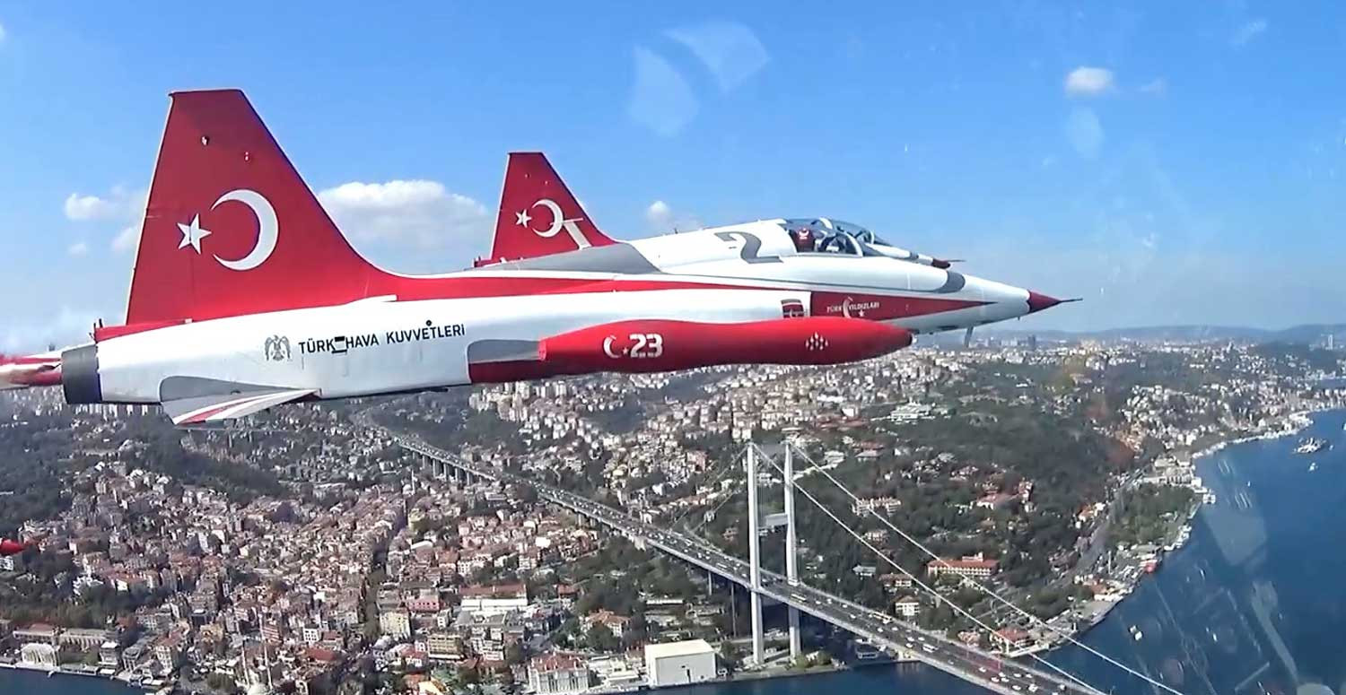 Jetlerin gösteri yaptığı şehirlerde Çanakkale Şehitler Abidesi, Anıtkabir, İstanbul Boğazı ve Mardin Kalesi gibi mekanlar ile İzmir Kordon'da gösteriyi izleyen kalabalık kokpitteki kameradan kaydedildi.