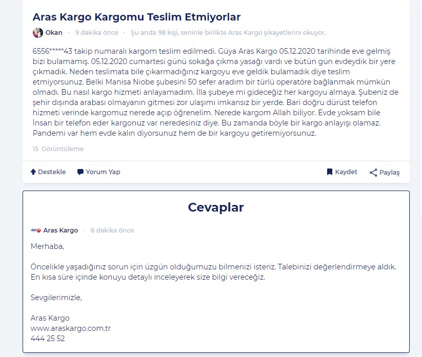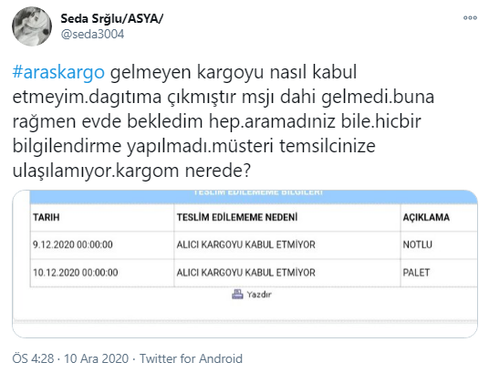 Burada da kargosu gelmek bilmeyen müşterinin isyanını görüyoruz.