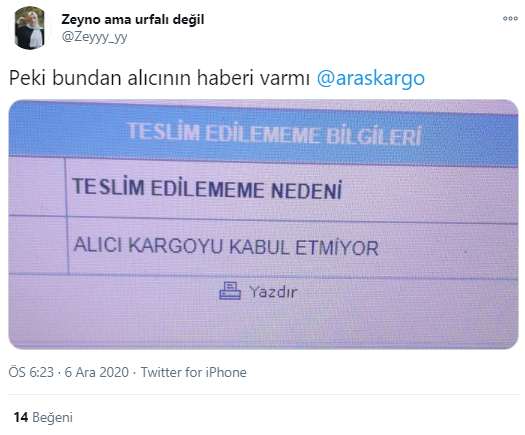 Firma ulaştırmadığı kargolarda kullanıcıyı deyim yerindeyse ''aptal'' yerine koyarak bu defada ''alıcı kargoyu almıyor'' yalanı ile karşımıza çıkıyor...