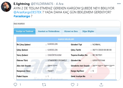 Onur Kala adlı kullanıcı Aras Kargo'nun ''geldik yoktunuz'' yalanının mağduru olmuş...