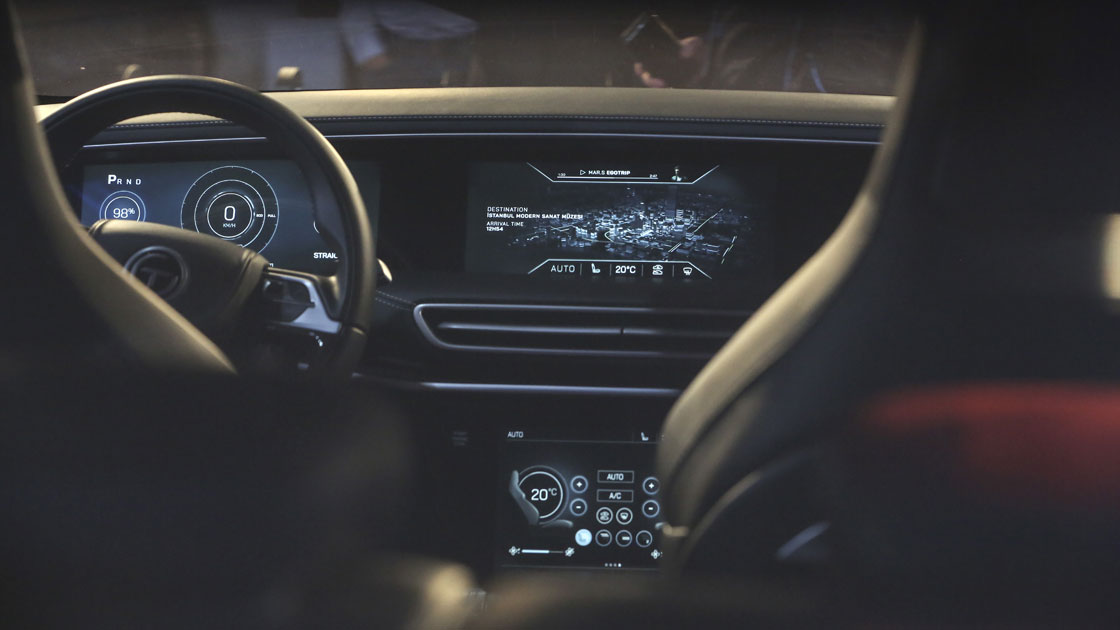 Yerli otomobilin lastikleri bridgestone. cyvision isimli yerli girişim tarafından geliştirilen holografik asistan otomobilde yer alıyor.