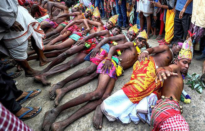 Bengali takviminin son gününde tanrılarını daha iyi hasat ve yağmur yağdırsın diye memnun etmek için insanlar 100 yıldır bu ritüeli uyguluyorlar