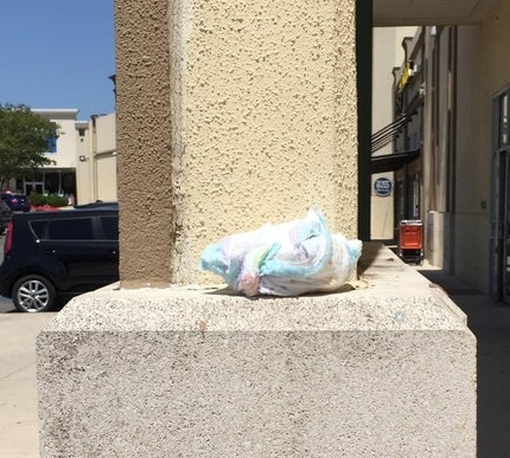 İnsanlar kirli bir bebek bezini çöpe atmakta zorlanıyor.