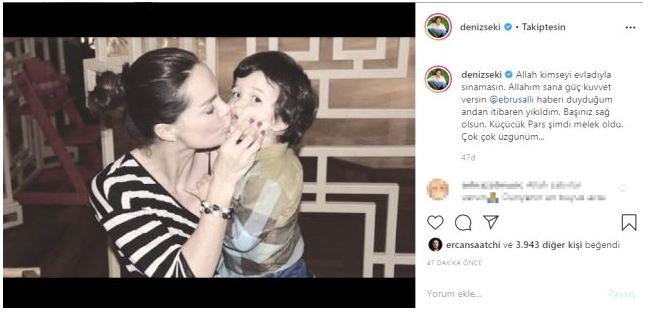 "allah kimseyi evladıyla sınamasın. allah'ım sana güç kuvvet versin. haberi duyduğum andan itibaren yıkıldım. başınız sağ olsun. küçücük pars şimdi melek oldu. çok çok üzgünüm..."