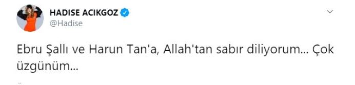 "ebru şallı ve harun tan'a, allah'tan sabır diliyorum... çok üzgünüm..."