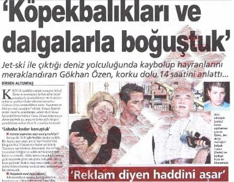 Gökhan Özen'in adından söz ettirmek için yaptığı ilginç açıklaması; "Jet ski ile denizde kaybolduğu" haberi medyaya yansıdıktan sonra pek çok hayranı onun için korkmuştu. Ünlü şarkıcı birkaç gün sonra gayet dinç bir şekilde "geri geldim, kurtuldum" diye ortaya çıktı. Ardından da "köpek balıklarıyla boğuştuğu" nu iddia etti.