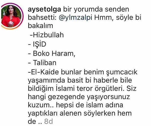 Instagram hesabında bir takipçisiyle girdiği diyalogda terör örgütlerini sıralarken ‘islami terör örgütleri’ ifadesini kullanınca bir anda büyük tepki gör
