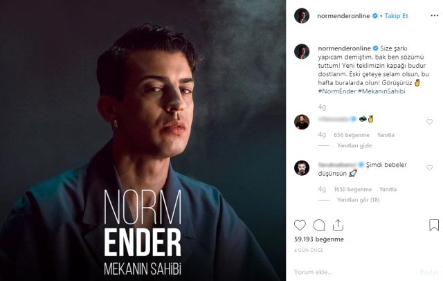 Norm ender, yeni şarkısının müjdesini ınstagram hesabından verdi.