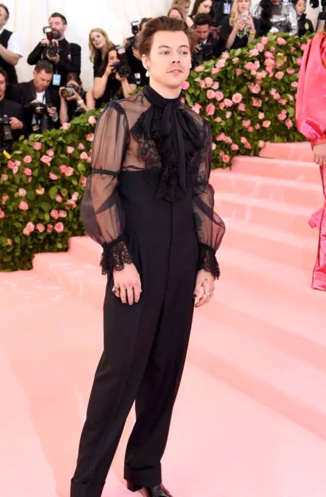 One direction grubunun yakışıklı üyesi harry edward styles, dün gece kostüm enstitüsü yararına her sene mayıs ayının ilk haftası new york metropolitan sanat müzesi’nde düzenlenen met gala ödül törenine katıldı.
