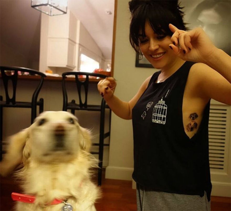 Ezgi mola ise çok sevdiği kuki ve sushi isimli köpeklerinin fotoğraflarını kaburgalarına dövme olarak yaptırdı.