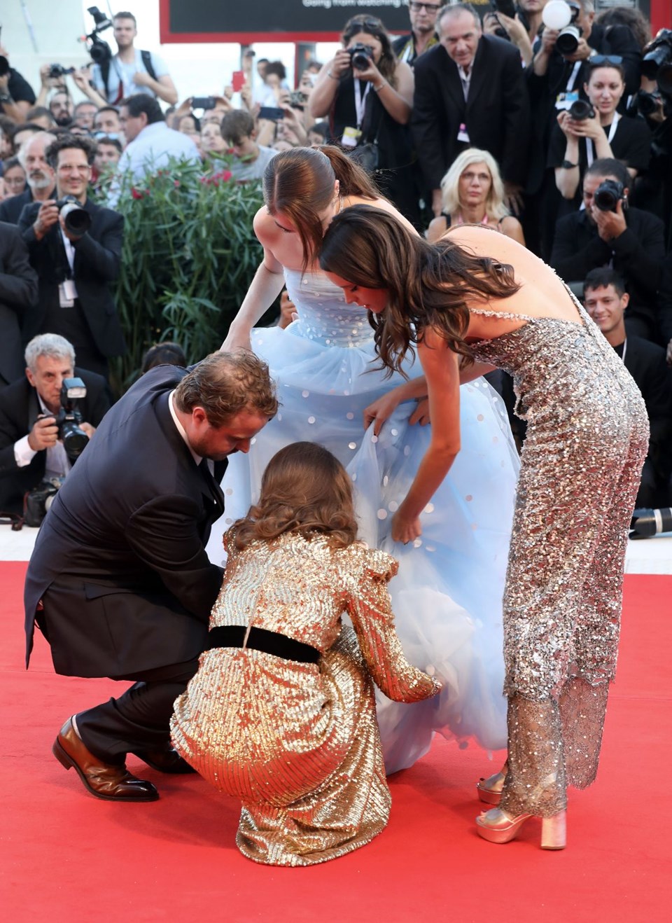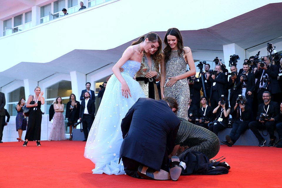 Natalie portman ve stacy martin, raffey cassidy’nin elbisesini ayakkabısından kurtarmaya çalıştı.