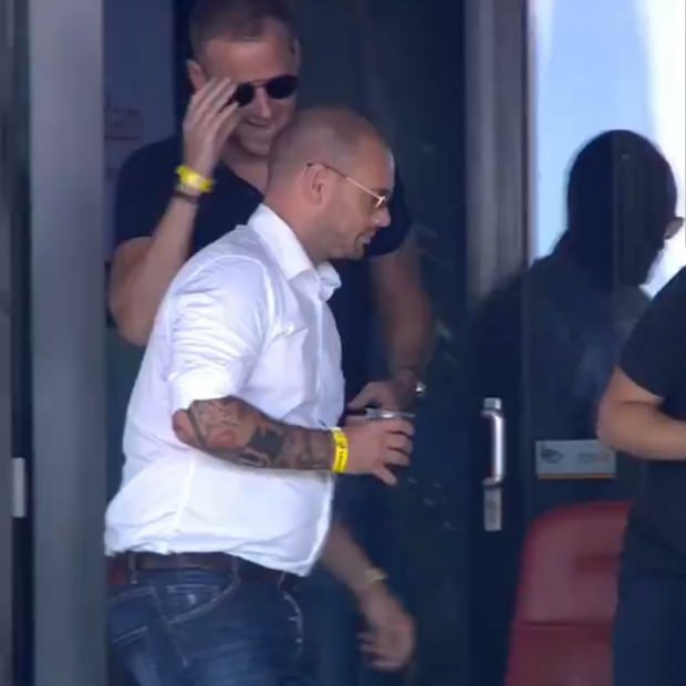 Eski futbolcu wesley sneijder kilo aldığı görüntüsü ile şaşkınlık yarattı. wesley sneijder'in maçı izlemek için aldığı kilolar yüzünden oturmaya zorlandığı anlar dikkatlerden kaçmadı.