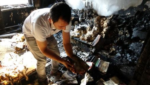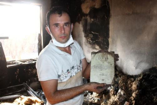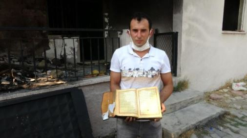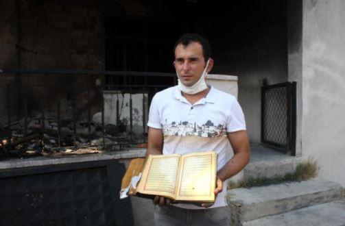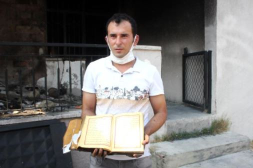 Yanan evini görünce tek temennisinin Kur'an-ı Kerimlerin yanmamış olması olduğunu söyleyen işitme engelli afetzede Ramazan Aydın, "Çarşamba akşamı arkadaşımla birlikte Çolaklı'daki yangına su götürmek için gittik. 00.00 gibi eve döndük. Yattıktan sonra koku gelmeye başladı. Saat 02.00 gibi babam beni aradı. Yangın var dediler. Baktık buraya doğru geliyor, bahçenin arkasında 300'e yakın tavuk ve keçilerimiz vardı onları bir arabaya bindirdik ve bölgeden uzaklaştık. Canımızı zor kurtardık. Daha sonra evimin olduğu yere geldik. İtfaiye araçlarını gördüm. Evim yanıyordu. Söndürdüler, zor girdim eve baktım hiçbir şey kalmamış. Her şey yanmış. Evi geziyordum, İnşallah Kur'an-ı Kerimler yanmamıştır dedim. Bir baktım gerçekten yanmamış. Bir tanesi bile yanmamış. Evimin içerisinde hiçbir şeyim kalmadı, kül oldu. Bir tek Kur'an-ı Kerimler yanmadı" ifadelerini kullandı.