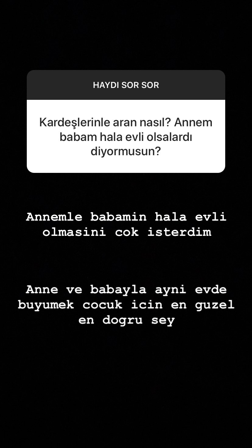Yasmin erbil, bir takipçisinin “kardeşlerinle aran nasıl? annem ve babam hala evli olsalardı diyor musun?” sorusuna şöyle karşılık verdi: