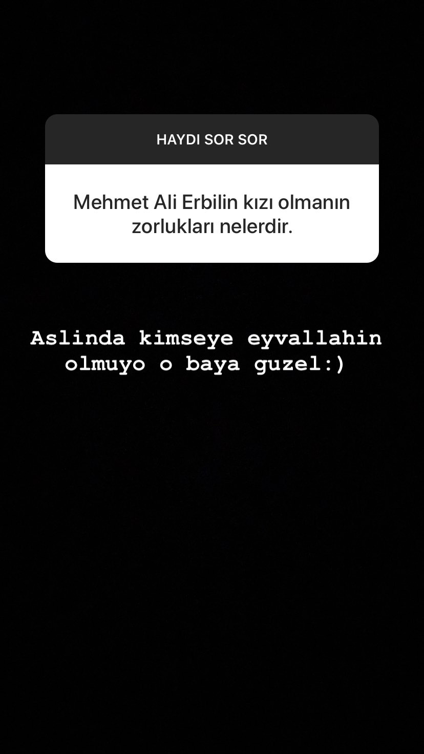 Instagram’ın soru-cevap özelliğini kullanan yasmin erbil, babası mehmet ali erbil ile ilgili soruları içtenlikle yanıtladı.