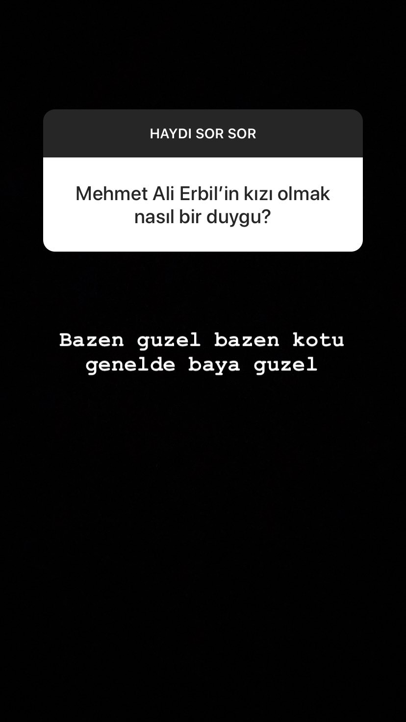 Yasmin erbil, “mehmet ali erbil’in kızı olmak nasıl bir duygu” sorusunu ise şöyle cevapladı: “bazen güzel, bazen kötü… genelde baya güzel”