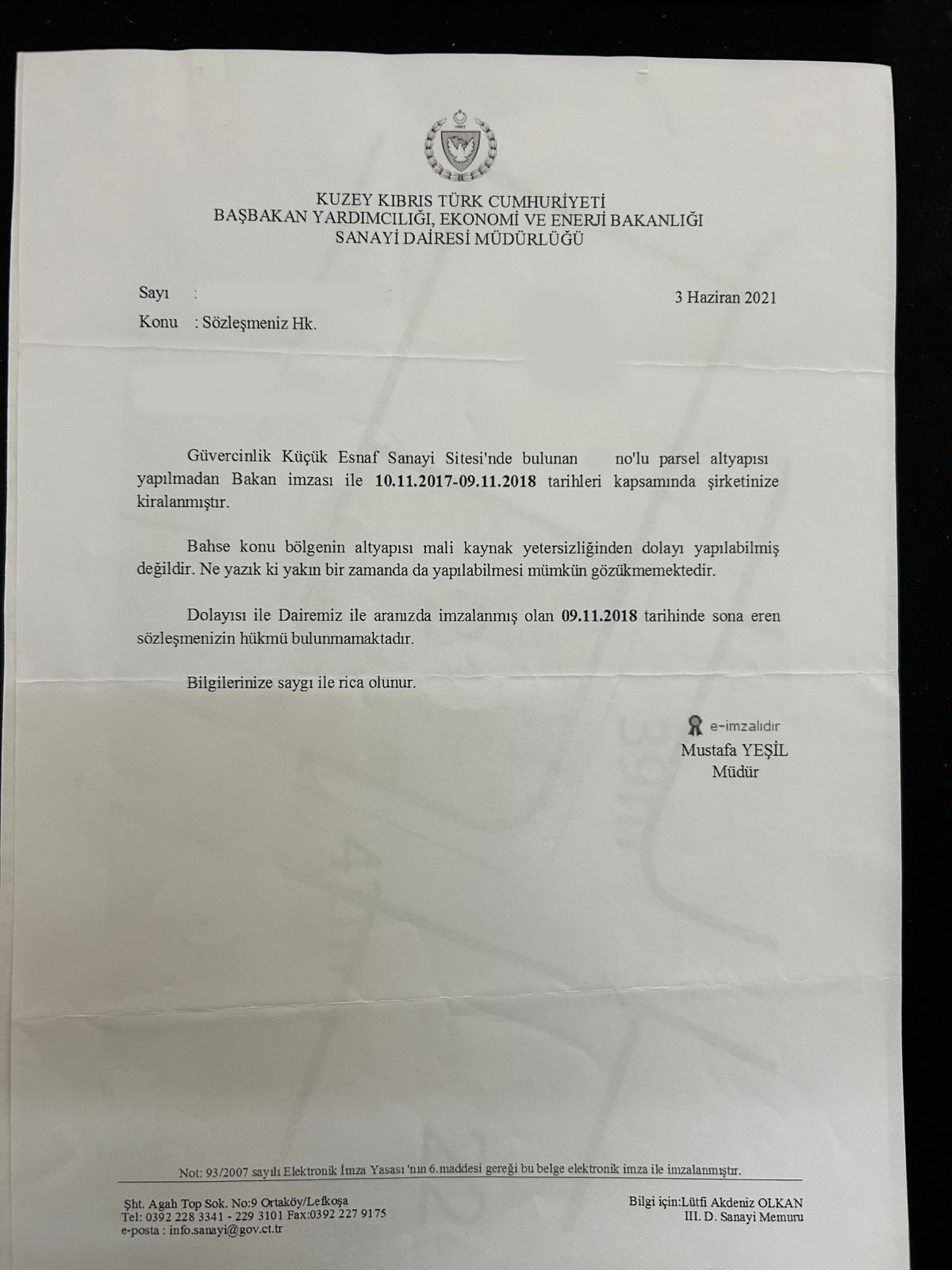 Tapu Dairesi, sanayi bölgesinin 1. Etabı hazırlanırken, bunu hükümete bildirmiş ama konu kulak ardı edilmişti.