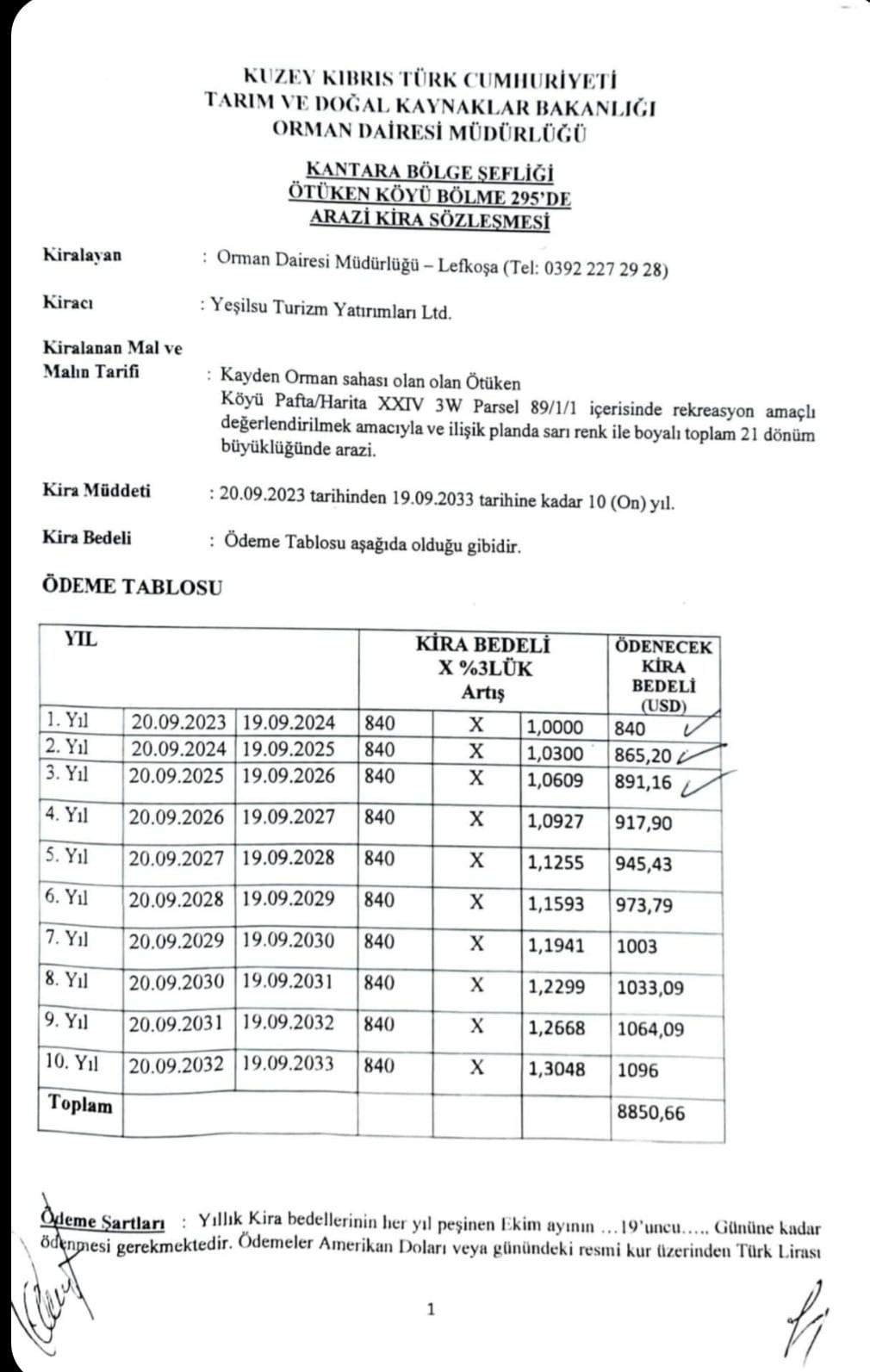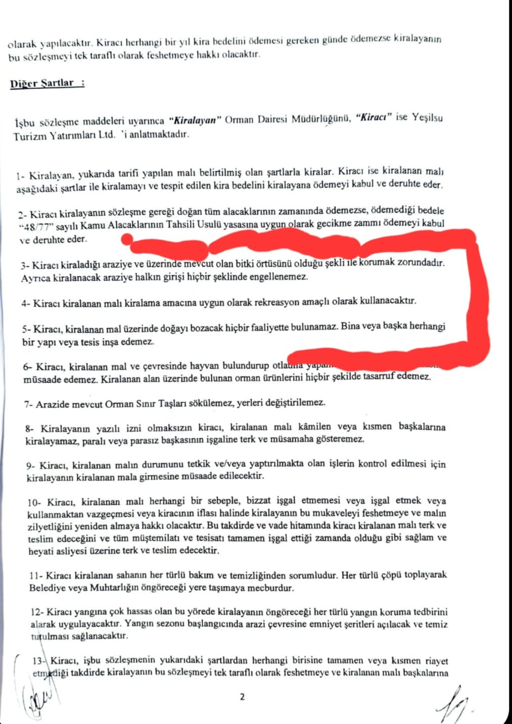 Sözleşme, Tarım ve Doğal Kaynaklar Bakanı H. Çavuş Kelle ile, Arabacıoğlu"na ait YEŞİLSU CONSTRACTİON LTD arasında imzalandı. Sözleşme ile denize sıfır 21 dönüm orman arazisi 10 yıllığına ve ayda 70 dolar kira ile Ahmet Arabacıoğlu'na peşkeş çekildi