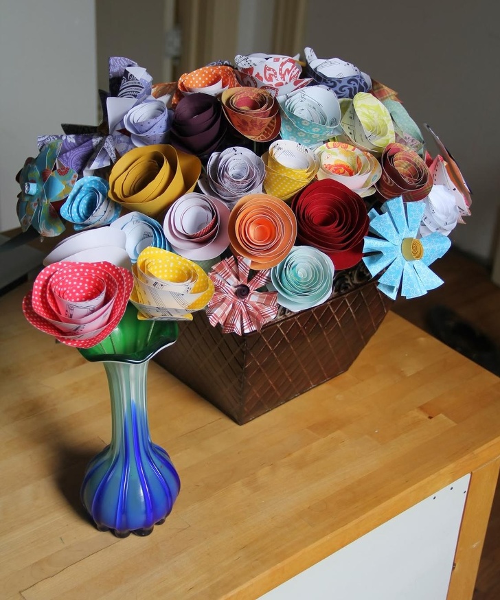 Bu adam, karısının ilk evlilik yıldönümünü kutlaması için bir demet kağıt çiçek yapmayı başardı.