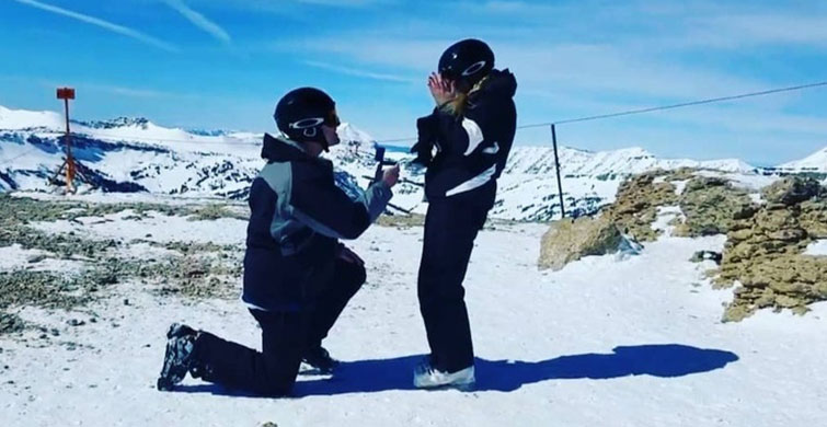 “birlikte 7 yıl geçirdikten sonra erkek arkadaşım bir kayak sürprizi yaptı ve onunla 10,450 feet'te evlenmemi istedi!”