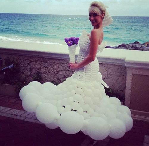 Kumaştan yapıldığını bildiğimiz gelinlik balondan yapılmış.